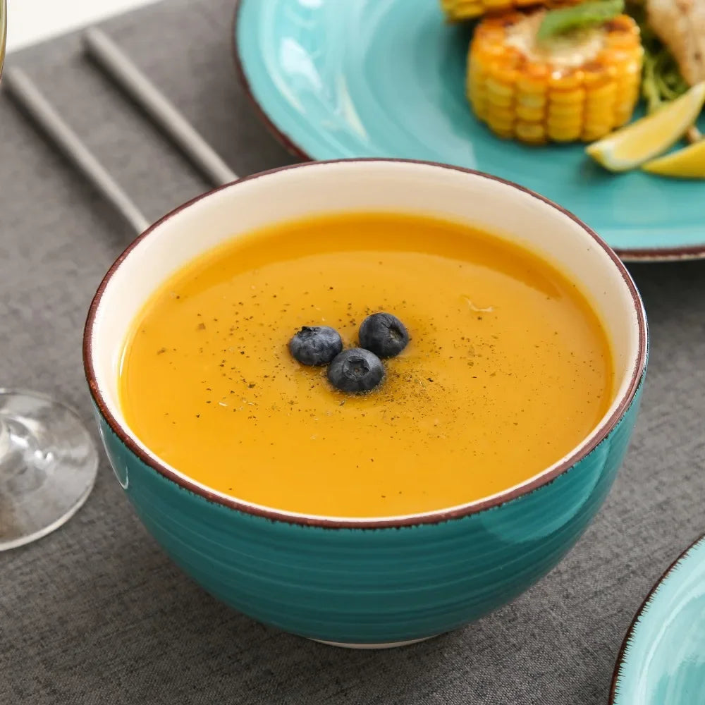 16-Piece Vintage Turquoise Ceramic Dinnerware Set
