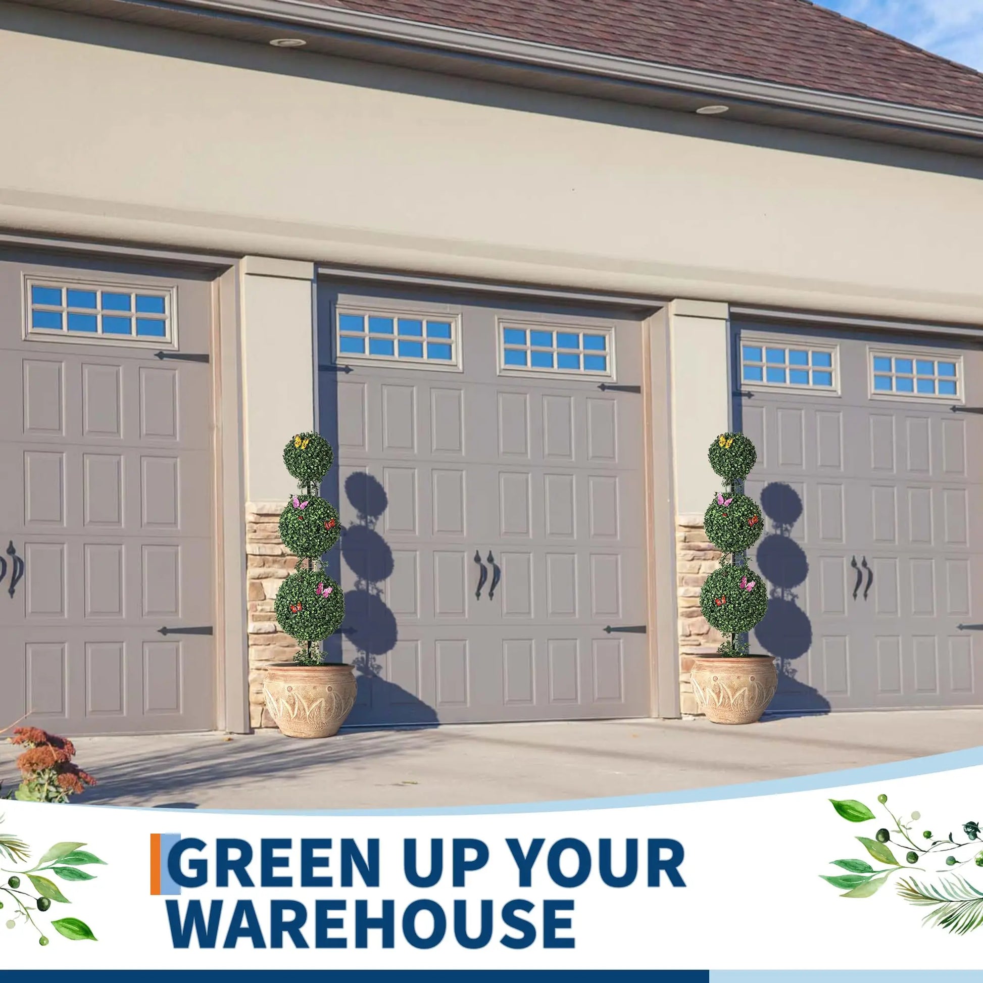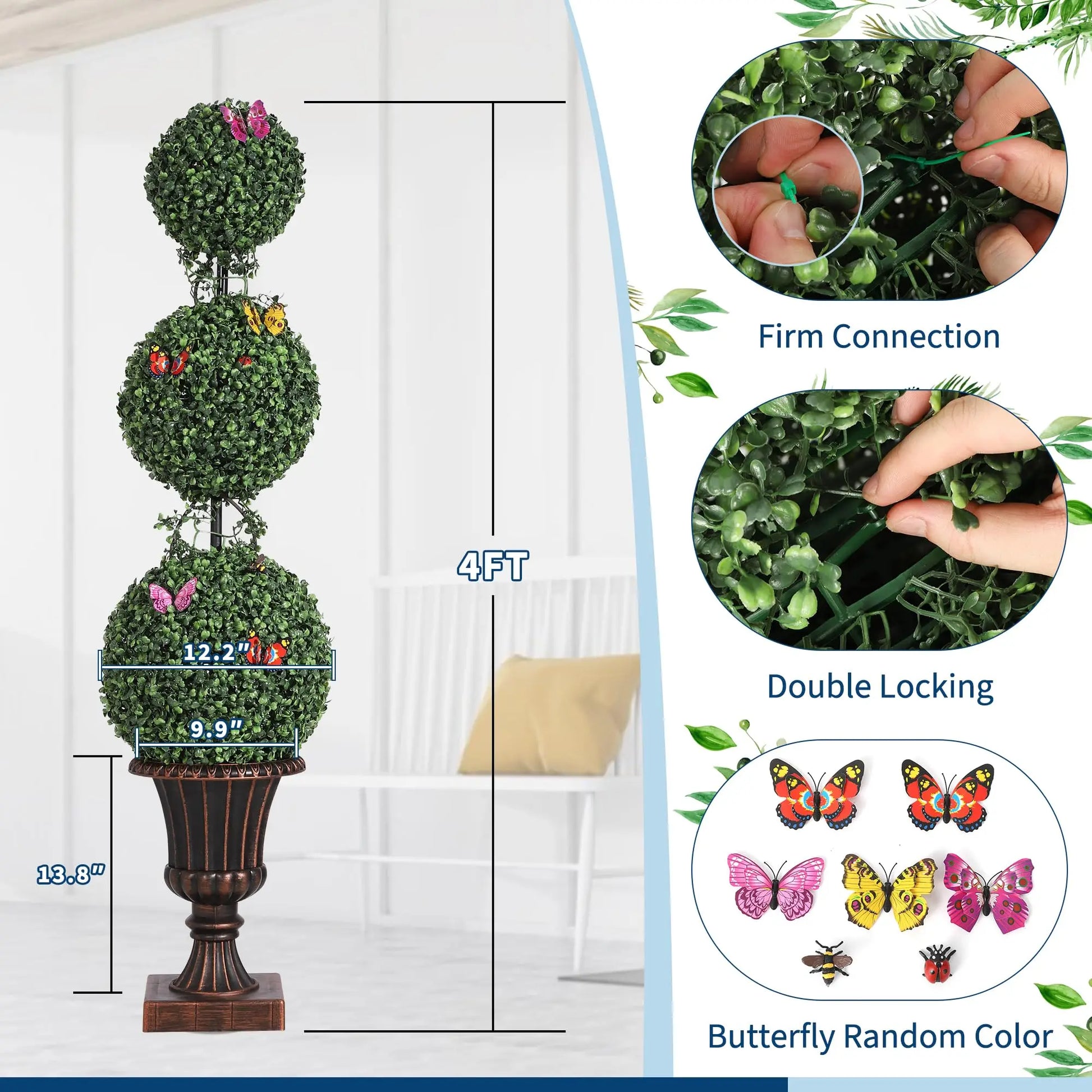 4' Artificial Triple-ball Topiary Tree w/Butterly Decoration