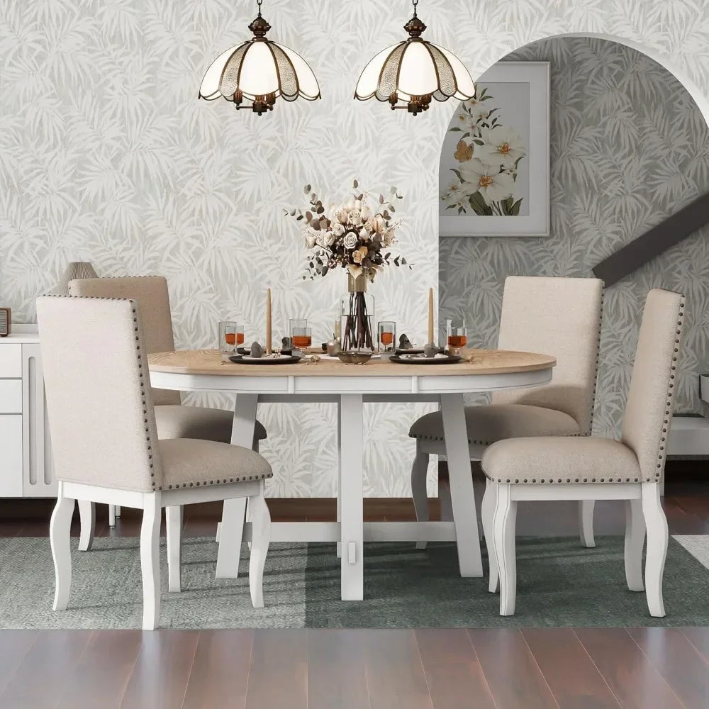 Type: 5-Piece Round Natural Wood Dining Table Set for 4