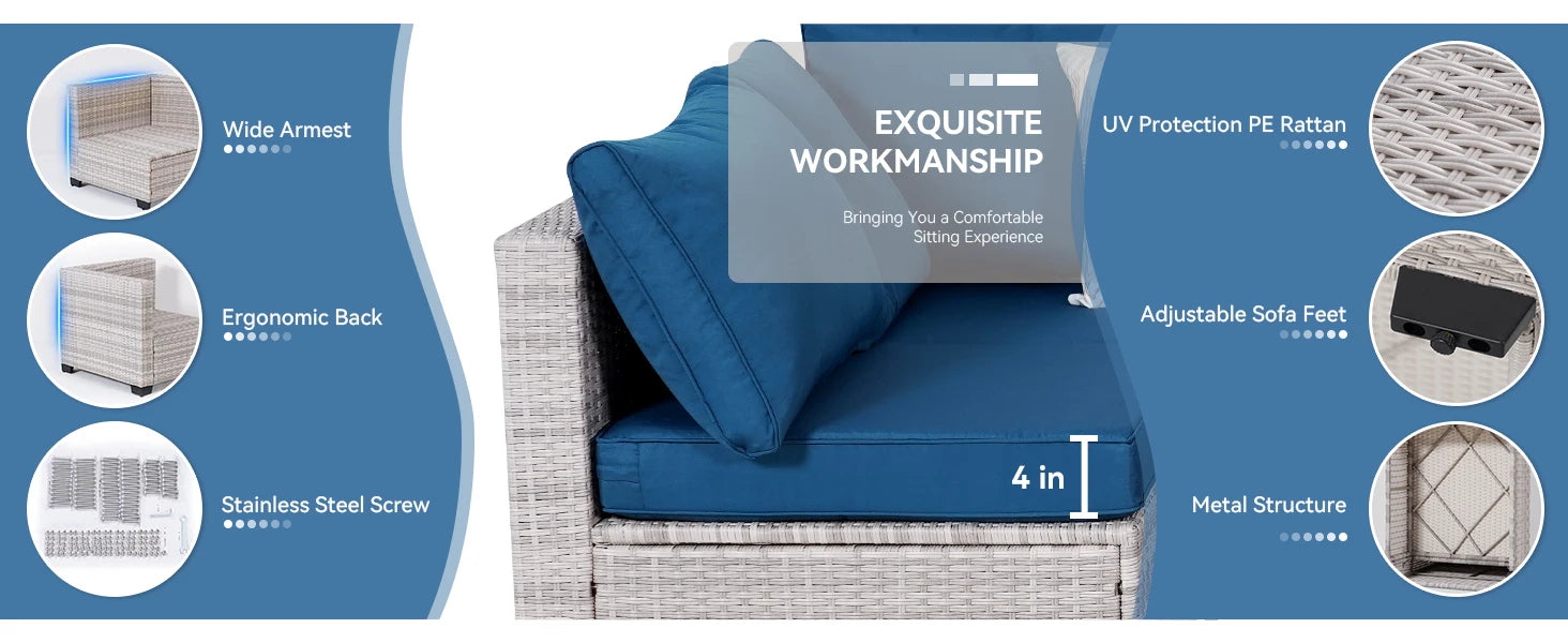 Type: 7-Piece PE Rattan Wicker Sofa Set