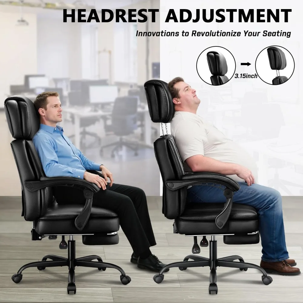 - Big & Tall Executive Office Chair 400lbs Weight Capacity : Crafted for heavy-duty professionals, this premium executive chair features a widened PU leather seat with 4-layer foam and steel-reinforced frame, evenly distributing hip pressure. Certified 400lbs weight capacity ensures durability for offices, gaming rooms, and home studios.
