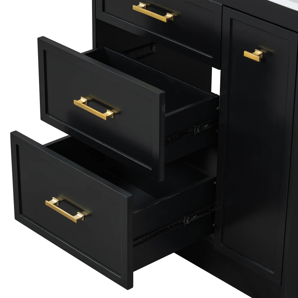 With a double-layer drawer and two deep compartments, this vanity offers versatile storage options, perfect for keeping all your bathroom essentials neatly organized and accessible.