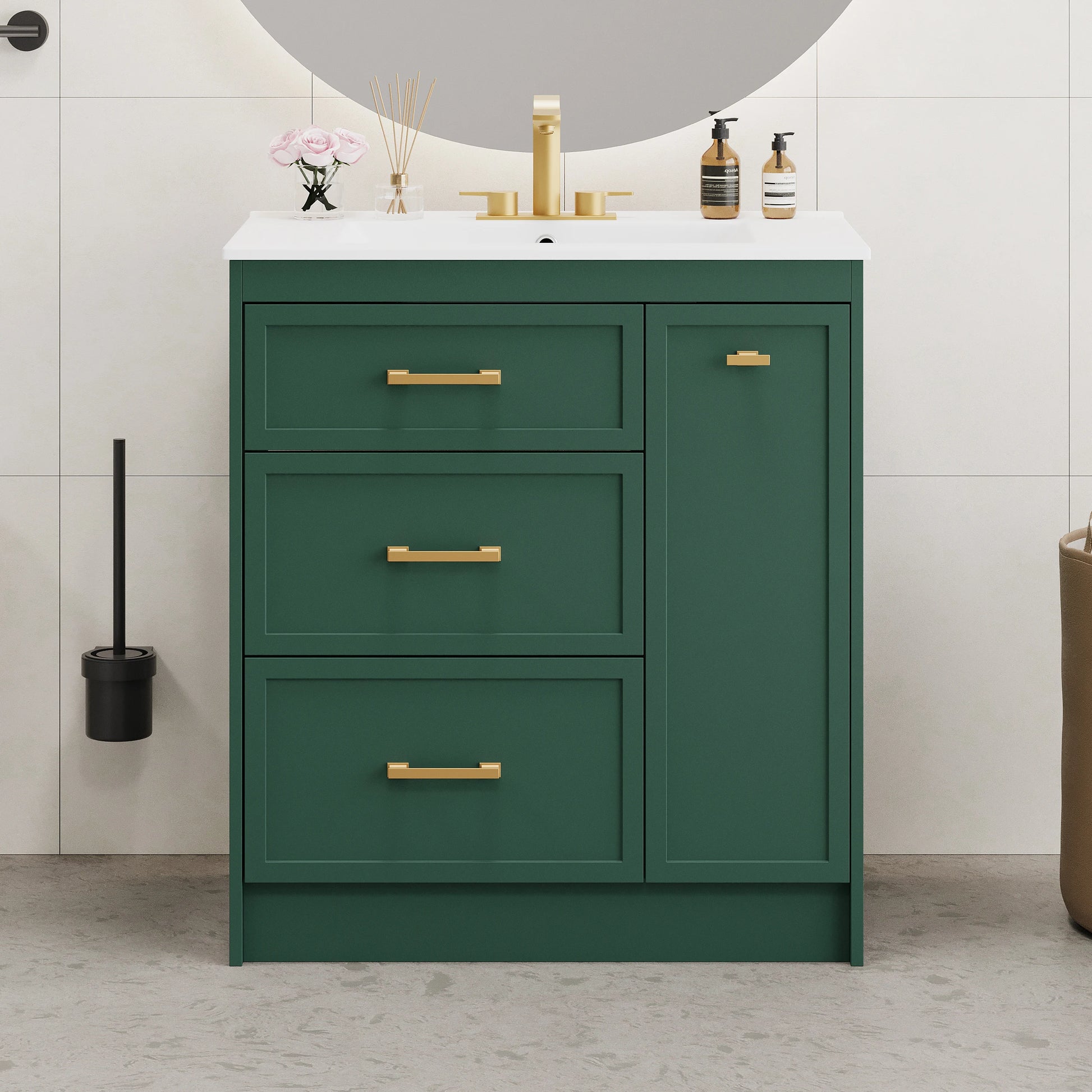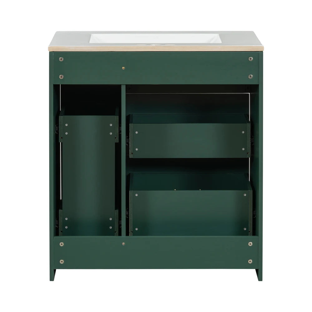 Classic 30" Forest Green Bathroom Vanity Set, Freestanding, with Three Drawers