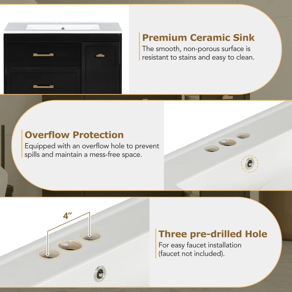 Type: Modern 30" Elegant Vanity w/Premium Ceramic Sink