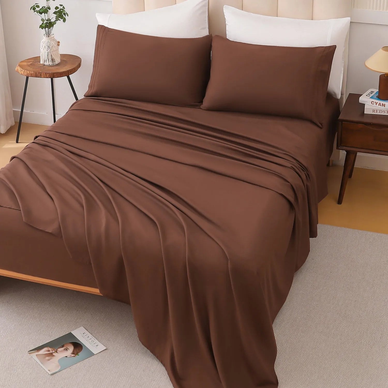 Complete 4-Piece Queen Size Rich Brown Bed Sheet Set