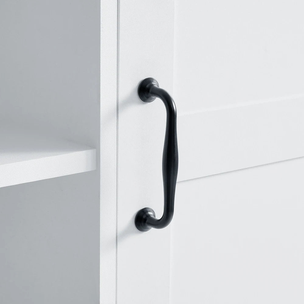 1. Tall Storage Cabinet 2. High-quality MDF Board 3. Cabinet with Door & Two Tilt-Out Drawers & Storage Rack 4. Applicable for Different Rooms Details 1. Functional Storage Rack 2. Three Adjustable Shelves 3. Metal Black Handles 4. Open shelve 5. Anti-tipping Device