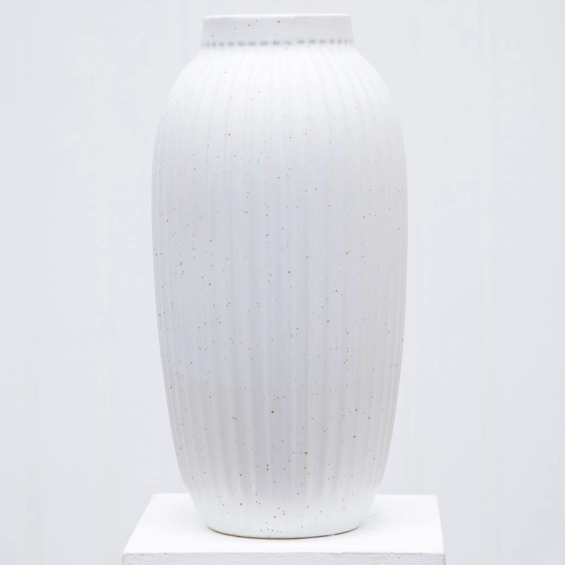 Decorative Indoor Speckled White Ribbed Ceramic Vase