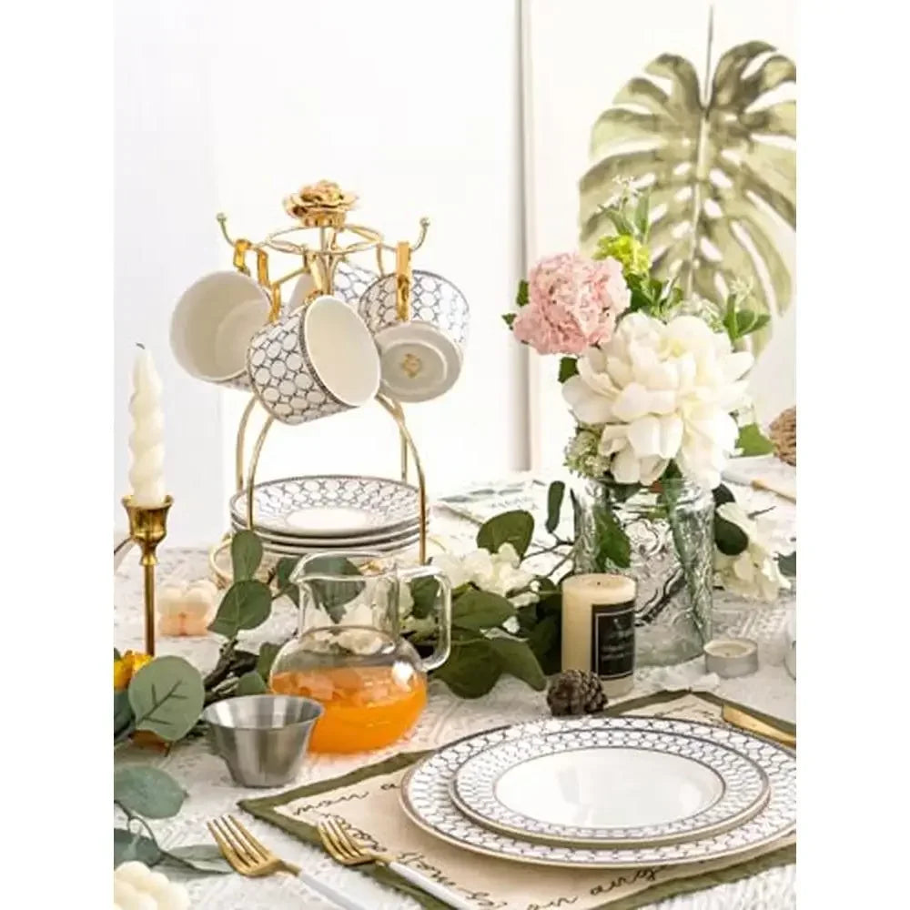 Fancy Porcelain Bone China Afternoon Tea Cup and Saucer Set for 4