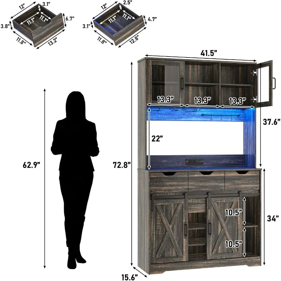 Type: Farmhouse Coffee Bar Cabinet/Liquor Bar/Pantry Cabinet w/RGB Lights