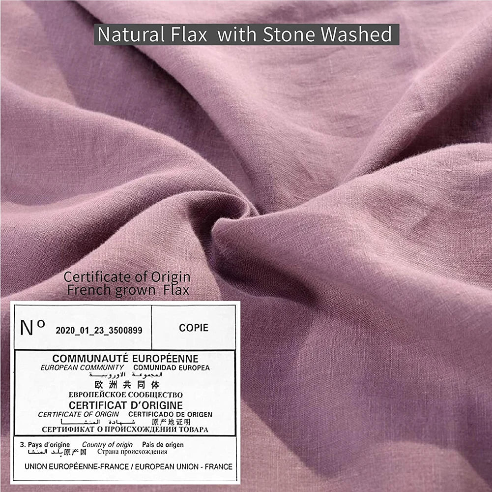 King & Queen Size 100% Linen Duvet Cover Bedding Set w/2 Pillow Shams