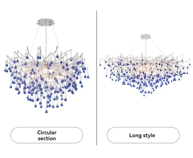 Type: Luxury Chrome Branch & Silver Blue Crystal Ceiling Chandelier