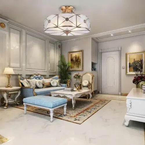 Luxury Hanging Pendant Chandelier w/Handmade Glass Lampshade