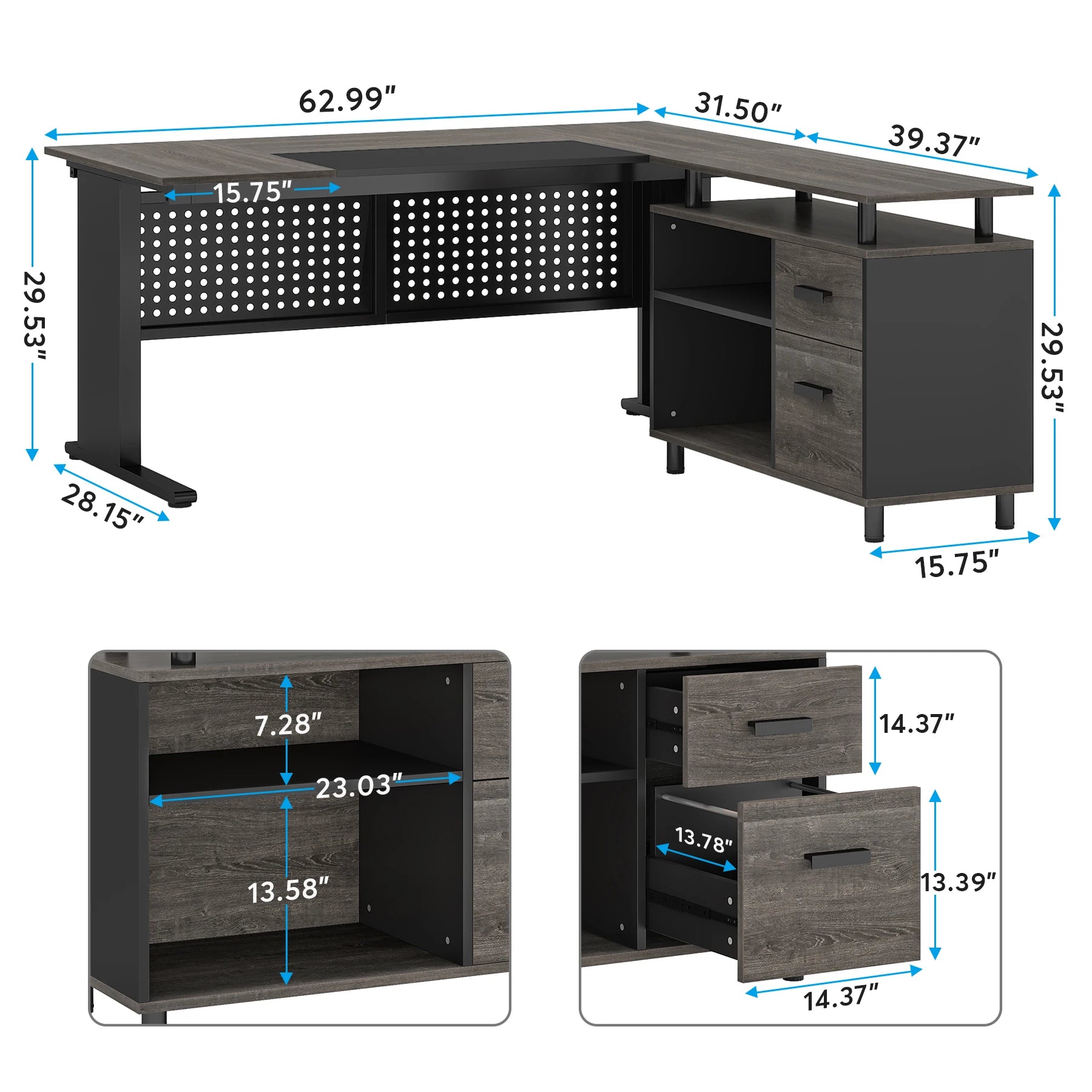 Dimensions: 63" L Large Desktop, 31.5" W, 29.5" H