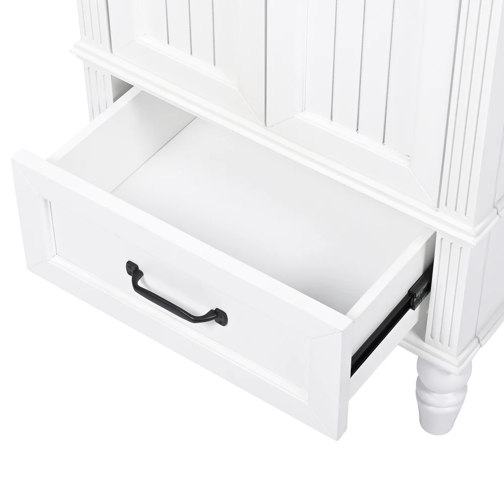 - Vanity with Cabinet & Drawer - This bathroom vanity has ample storage space: one cabinet with doors, and a big drawer. You can put soaps, towels, shampoos, tissue paper and other bathroom essentials in it so to keep them away from dust.
