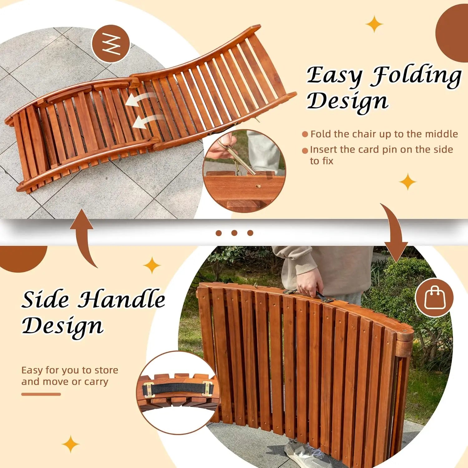 Type: Modern Large Solid Acacia Wood Chaise Lounge Chair-Set of 2
