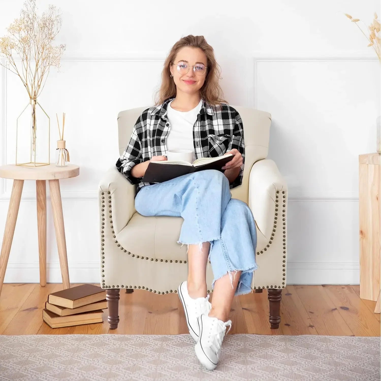 Type: Modern White/Ivory PU Leather Accent/Club Chair Set of 2