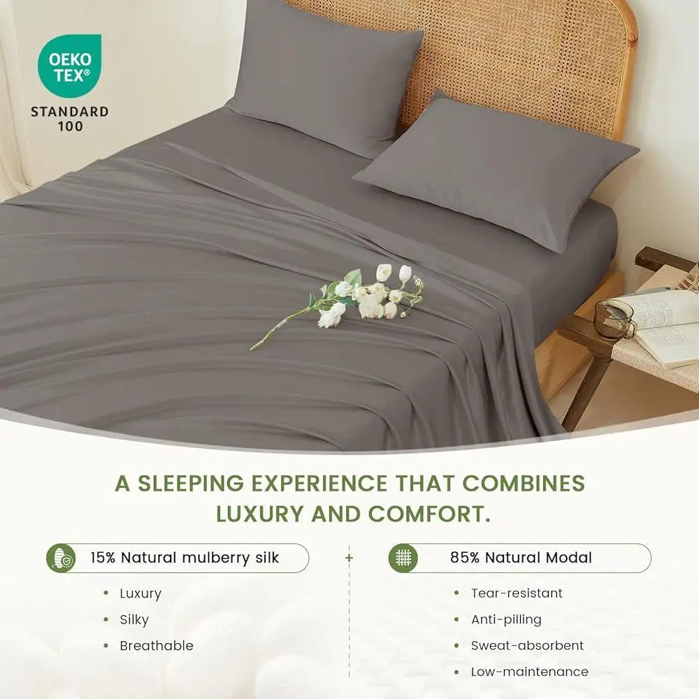 Queen Size Mulberry Silk Sheet Set in Charcoal