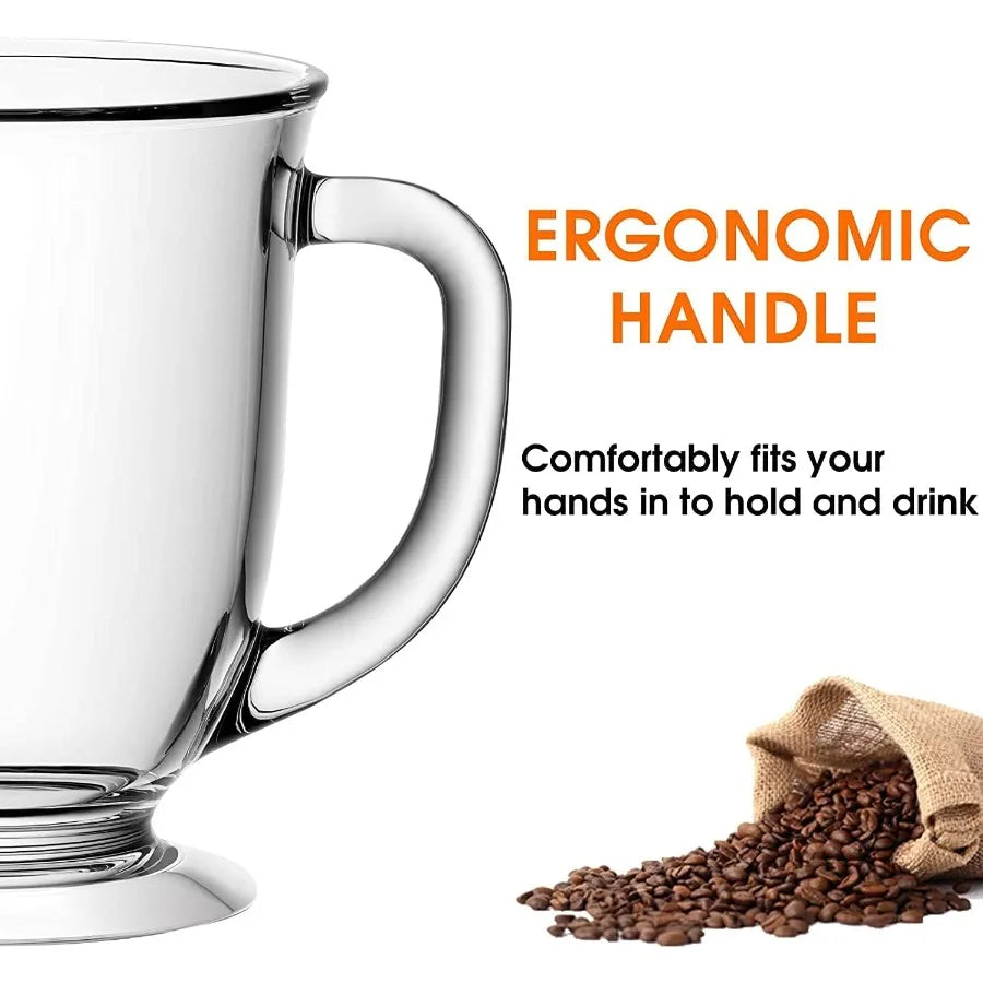 Type: Set of 4 Clear Large Glass Coffee Mugs w/Handles