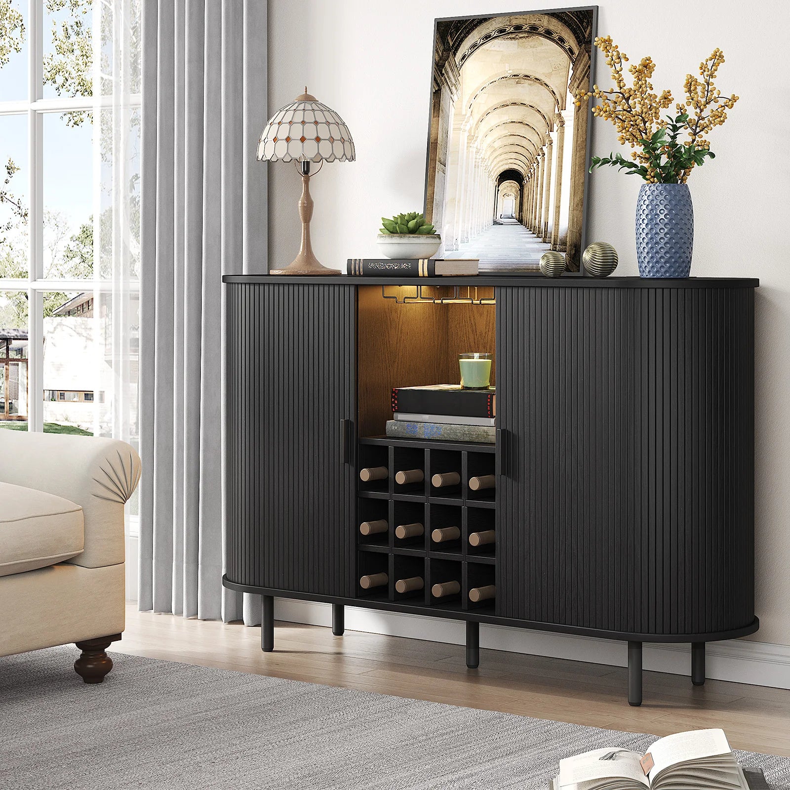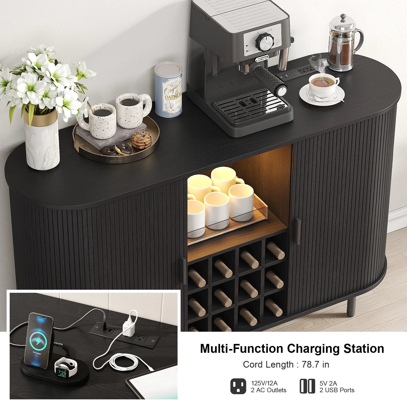 Spacious Wine Bar Cabinet/Coffee Bar Cabinet w/RGB Lights