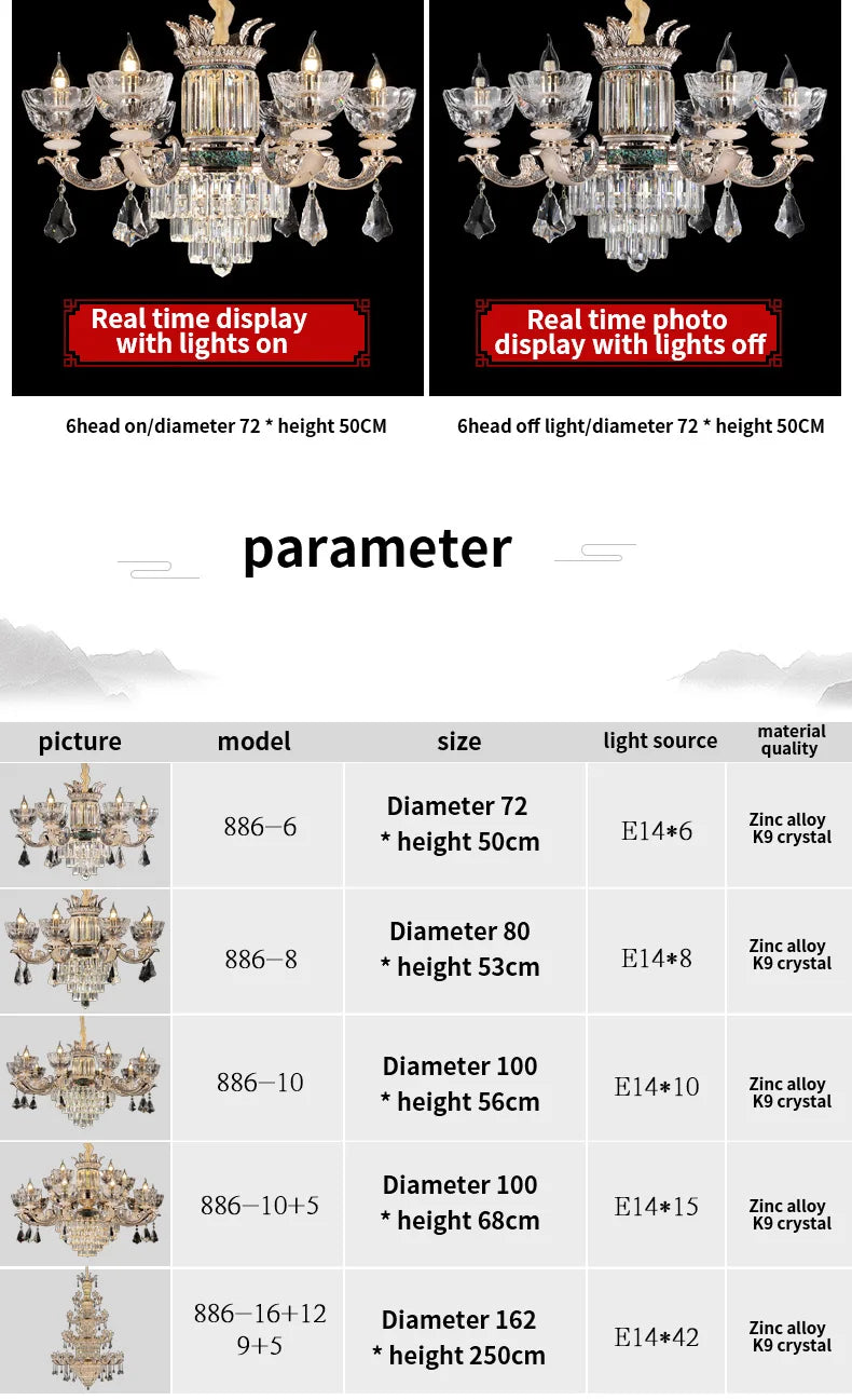 Type: Traditional European Aesthetic Style Chain Pendant Crystal Chandelier